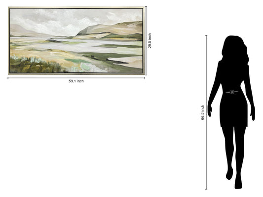 "Serene Landscape" Hand-Embellished Canvas In Frame - Muted Greens / Soft Earth Tones