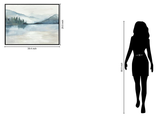 "Serene Reflections I" Hand-Embellished Canvas In Frame - Blue / Green / White / Black