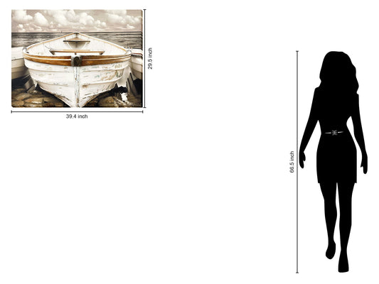 "Coastal Serenity" Hand-Embellished Wrapped Canvas - Natural Wood / Beige