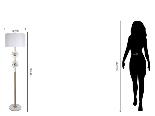 "Crystal Bloom I" Metal And Crystal Floor Lamp - Soft Gold / Clear Crystal / White Marble