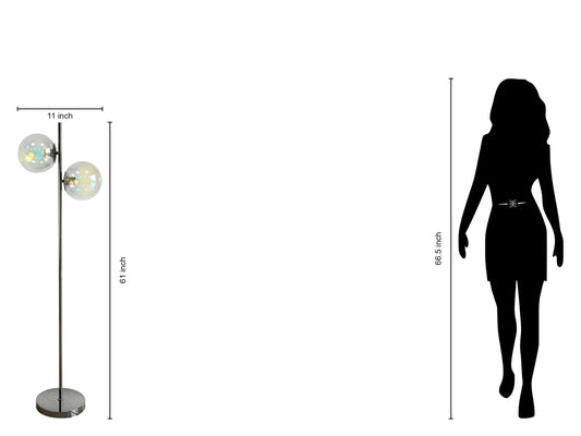"Celestial Radiance" Metal Floor Lamp With Iridescent Glass Globes - Gun Metal Iridescent Glass