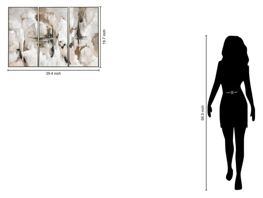 "Ethereal Reflections" Hand-Embellished Canvas Triptych In Frame - Neutral