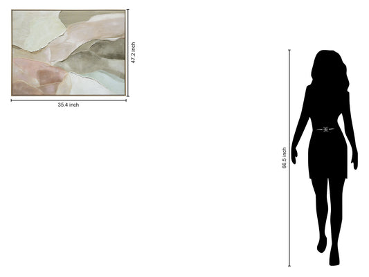 "Ethereal Layers" Hand-Embellished Canvas In Frame - Soft White / Muted Green / Taupe