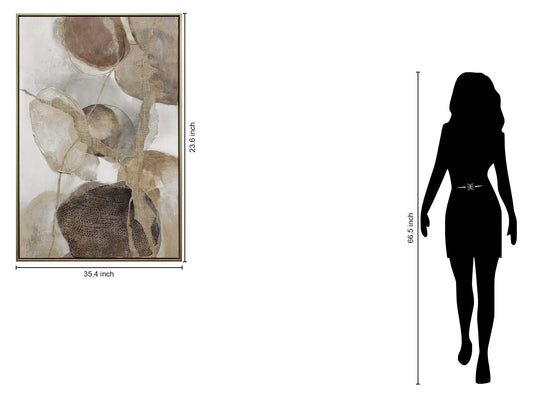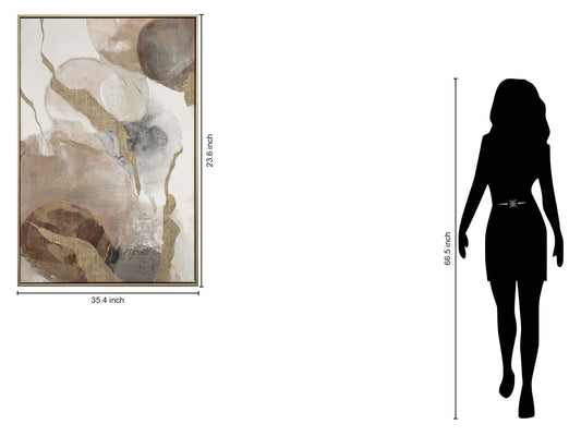 "Ethereal Whispers II" Hand-Embellished Canvas In Frame - Beige / Brown / Gold