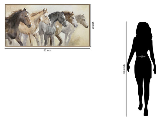 "Galloping Spirits" Hand-Embellished Canvas In Frame - Natural / Earthy