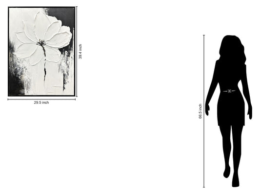 "Ethereal Blossom II" Hand-Painted Canvas In Frame - White / Black