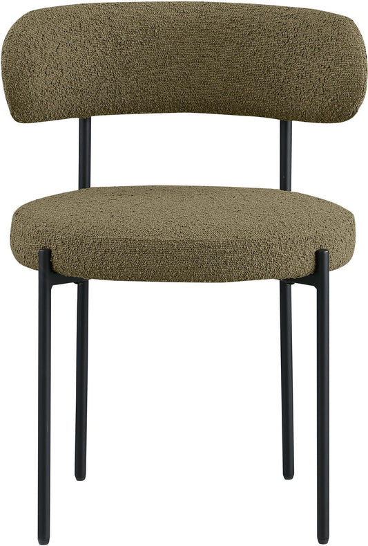 Beacon - Boucle Fabric Dining Chair With Black Legs (Set of 2) - Olive Green