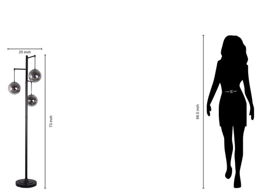 "Glass Orbs" Metal Floor Lamp - Matte Black / Soft Gold / Clear