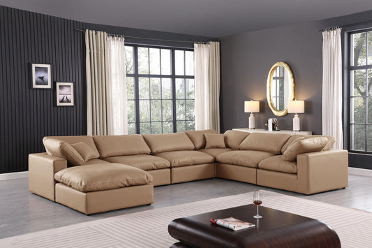 Comfy - 6 Piece Faux Leather Modular Corner Sectional - Tan