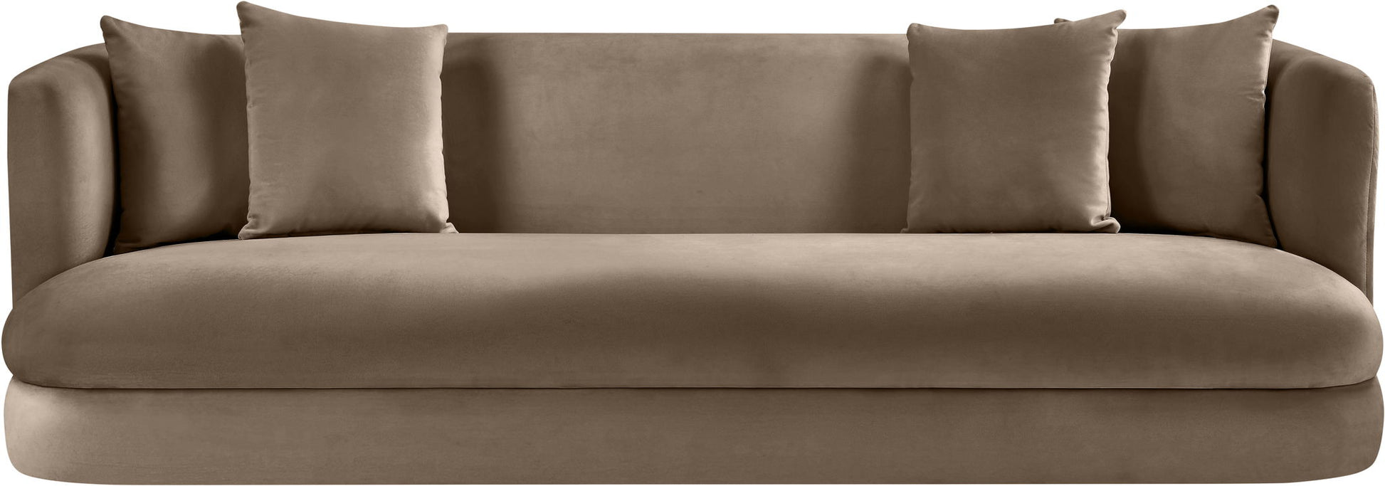 The Alder velvet upholstered sofa is an invitation to relax. Its rounded silhouette and soft velvet upholstery create a cozy and inviting space, perfect for stretching out and relaxing. Whether you're enjoying a quiet moment or hosting guests, this sofa is the perfect centerpiece for any living space.