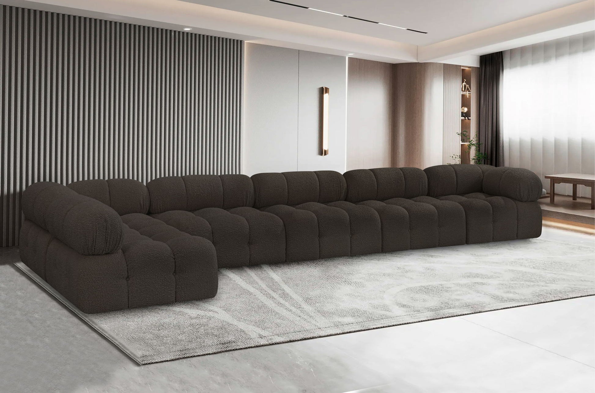 Introduce a touch of modern sophistication to your living area with the exquisite Ames Boucle Fabric Sectional. With plush boucle fabric and unique design, it will elevate the visual appeal of your living space. This elegant and captivating sectional can be mixed and matched with other pieces from the collection to create an endless array of stunning looks. So, get ready to transform your living area into an inviting and stylish haven with the Ames Boucle Fabric Sectional.