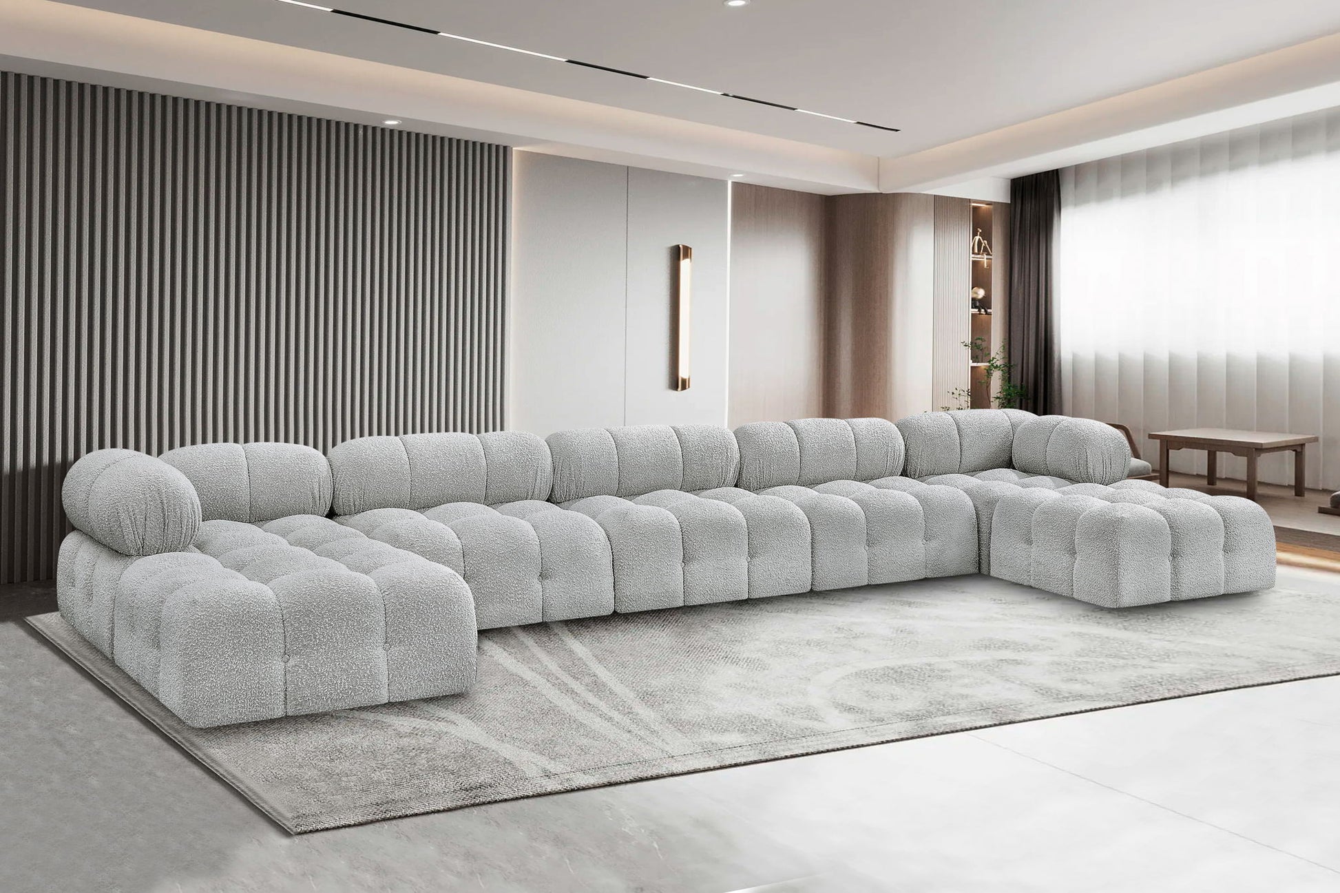 Introduce a touch of modern sophistication to your living area with the exquisite Ames Boucle Fabric Sectional. With plush boucle fabric and unique design, it will elevate the visual appeal of your living space. This elegant and captivating sectional can be mixed and matched with other pieces from the collection to create an endless array of stunning looks. So, get ready to transform your living area into an inviting and stylish haven with the Ames Boucle Fabric Sectional.