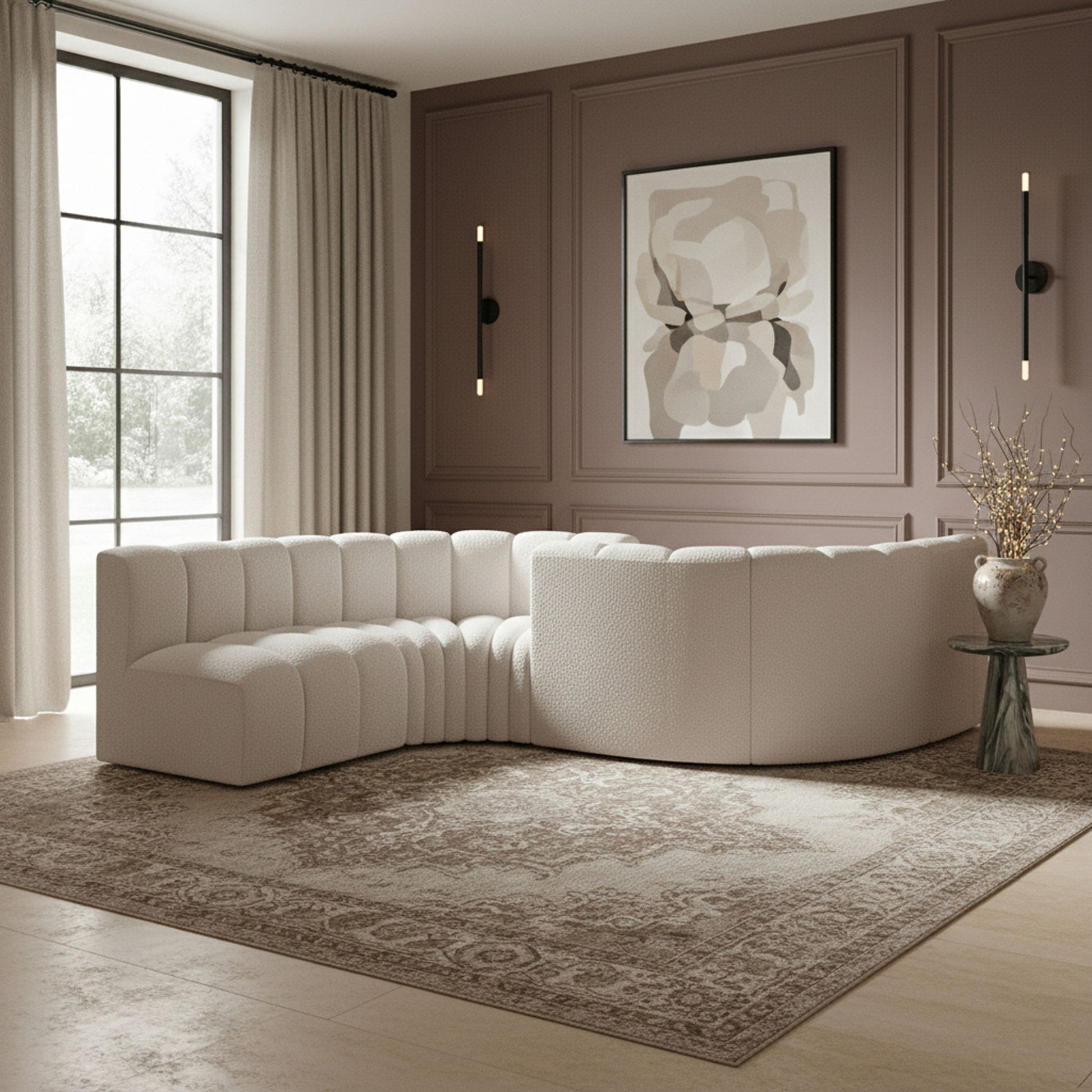 Arc - Boucle Fabric 6 Piece Modular Sofa - Cream