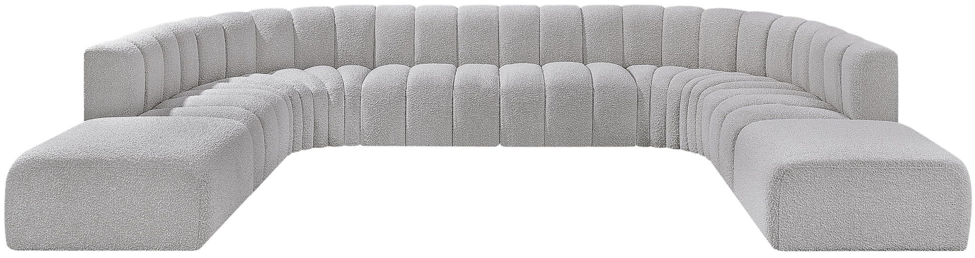 Give your living room or den the perfect blend of style and versatility with this Arc boucle fabric curved modular sofa. Part of the Arc modular furniture collection, this sofa comes upholstered in rich boucle fabric and features deep channel tufting that adds a touch of luxury while enhancing comfort and support. A seamless combination of form and function, this chair can be used with other Arc pieces to create a myriad of configurations in your well-curated room.
