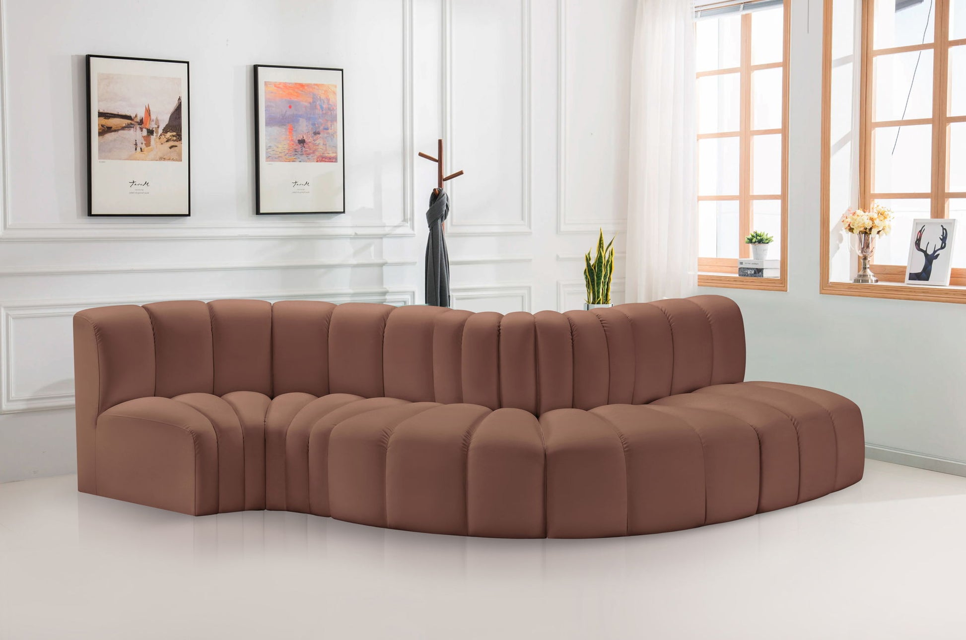 Arc - Faux Leather 5 Piece Modular Sofa - Brown