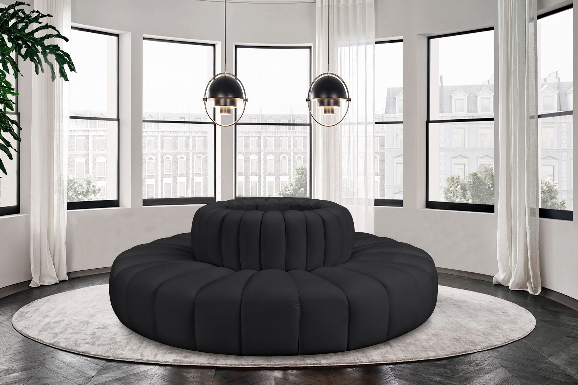 Arc - Faux Leather 8 Piece Round Modular Sofa - Black