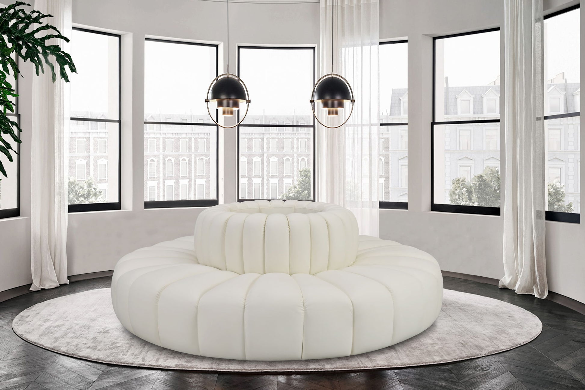 Arc - Faux Leather 8 Piece Round Modular Sofa - Cream