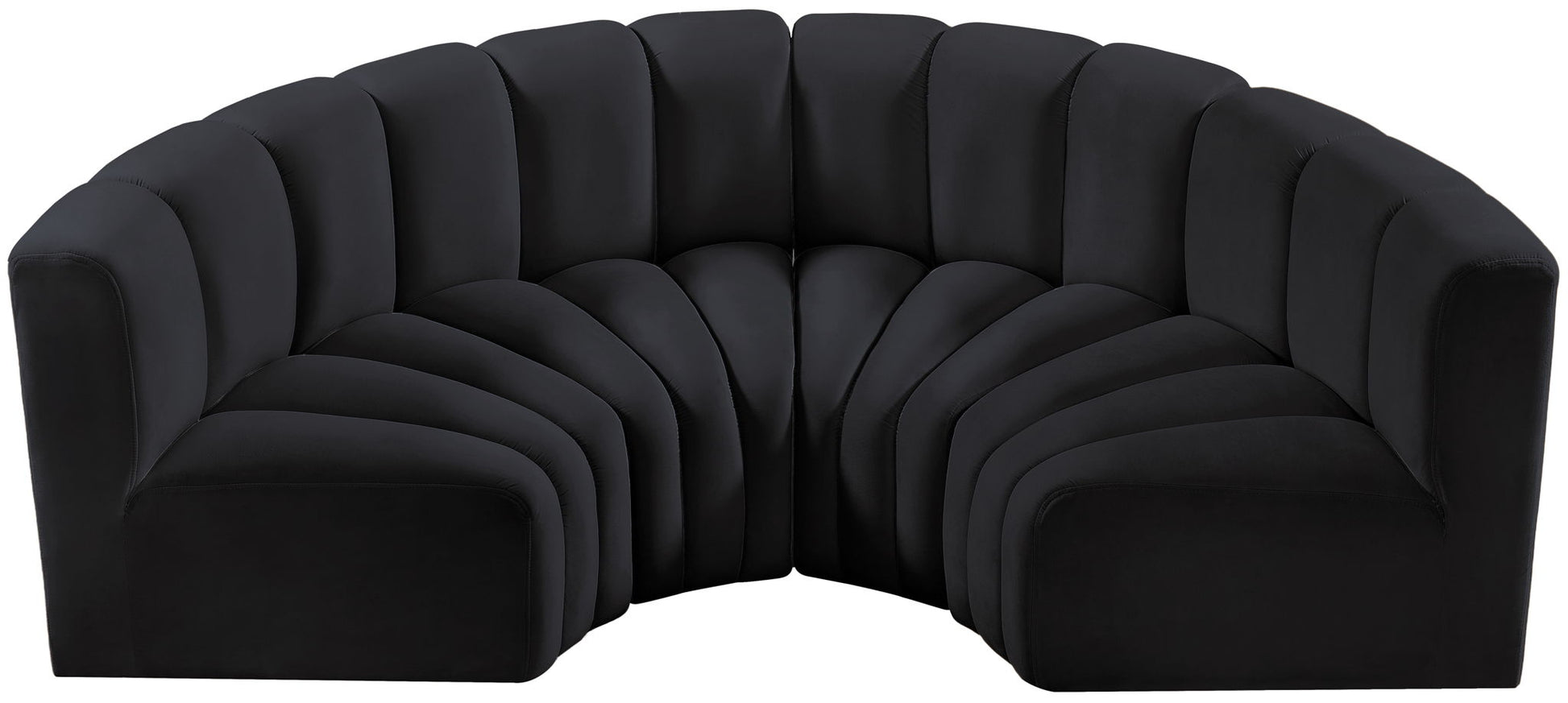 Arc - Velvet 4 Piece U-Shaped Modular Sofa - Black