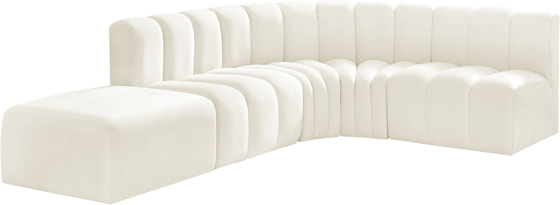 Arc - Velvet 5 Piece Corner Modular Sofa - Cream