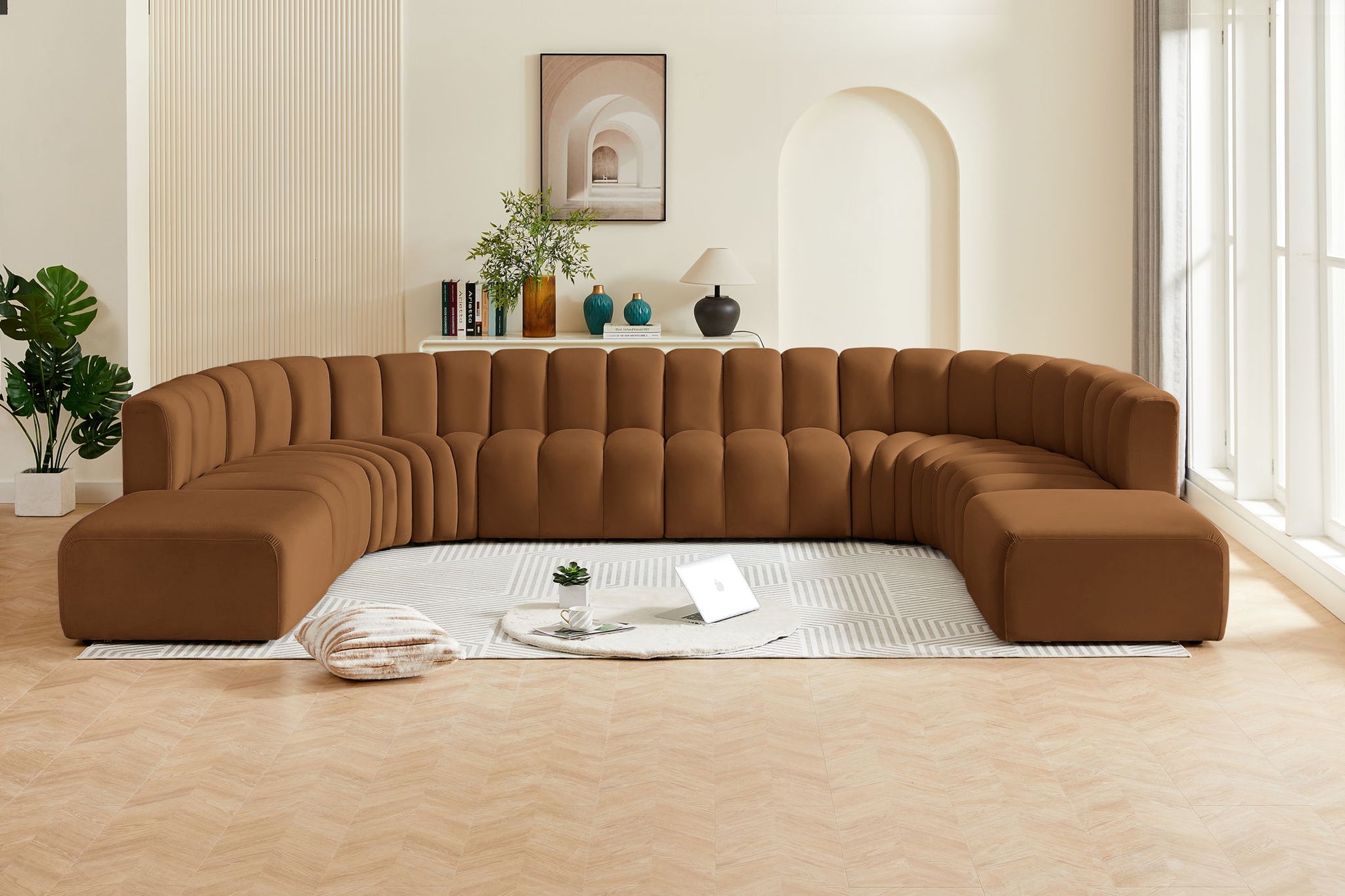 Give your living room or den the perfect blend of style and versatility with this Arc velvet fabric curved modular sofa. Part of the Arc modular furniture collection, this sofa comes upholstered in rich velvet fabric and features deep channel tufting that adds a touch of luxury while enhancing comfort and support. A seamless combination of form and function, this chair can be used with other Arc pieces to create a myriad of configurations in your well-curated room.