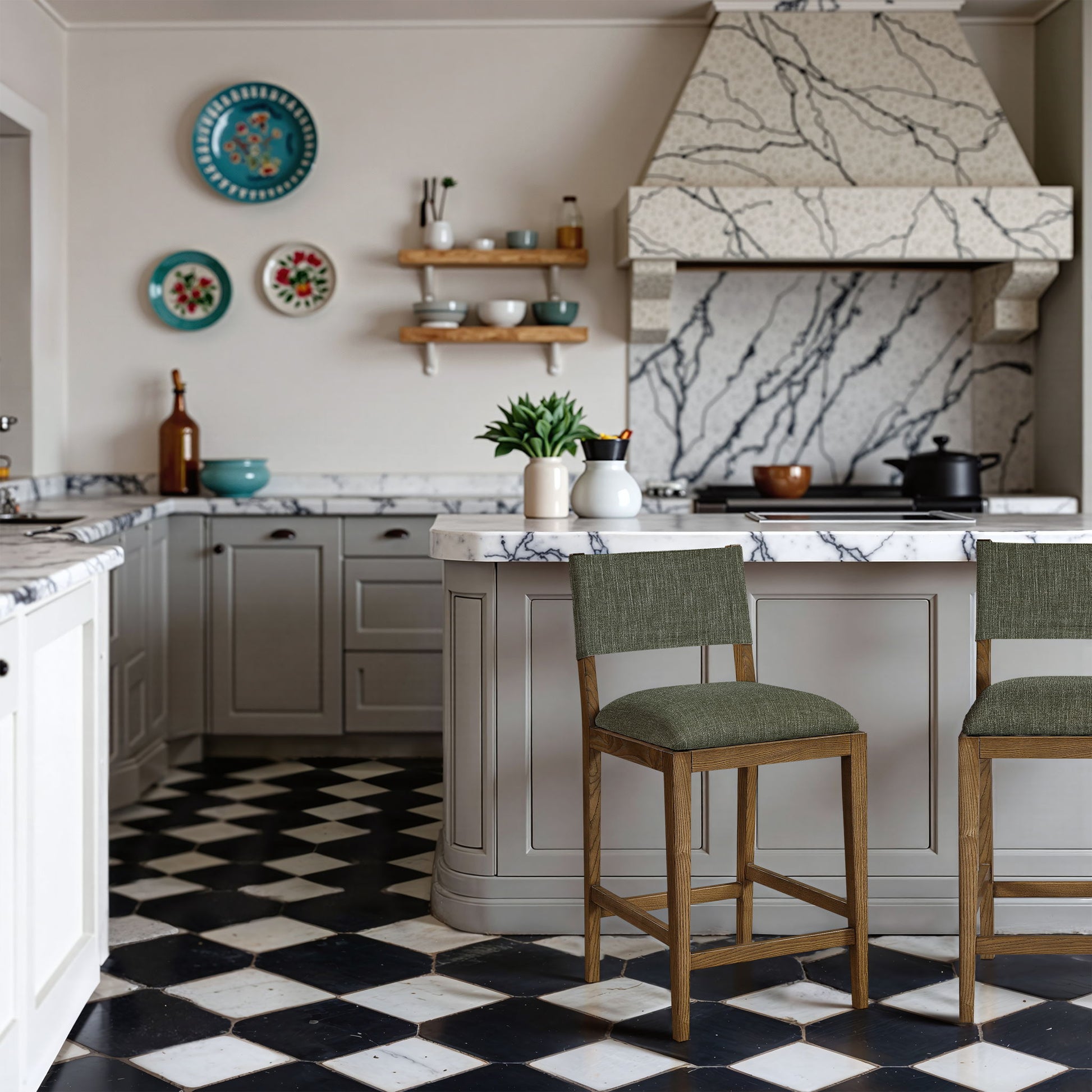 Avon - Linen Textured Performance Fabric Counter Stool - Olive