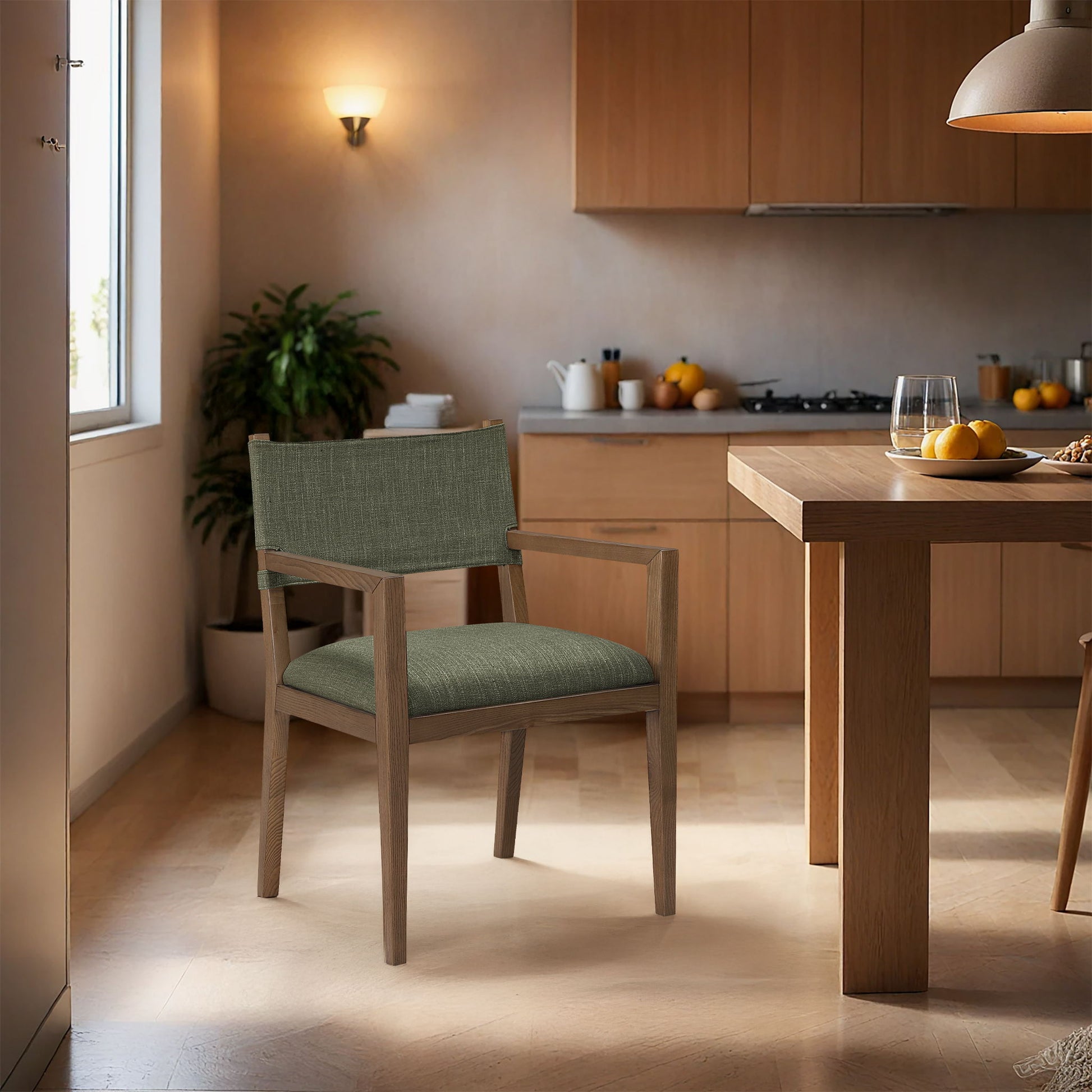 Avon - Linen Textured Performance Fabric Dining Arm Chair - Olive