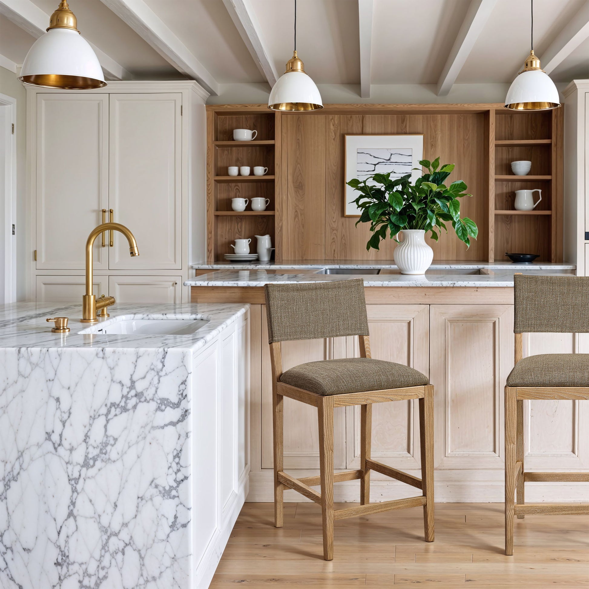 Avon - Linen Textured Performance Fabric Upholstered Counter Stool - Cream