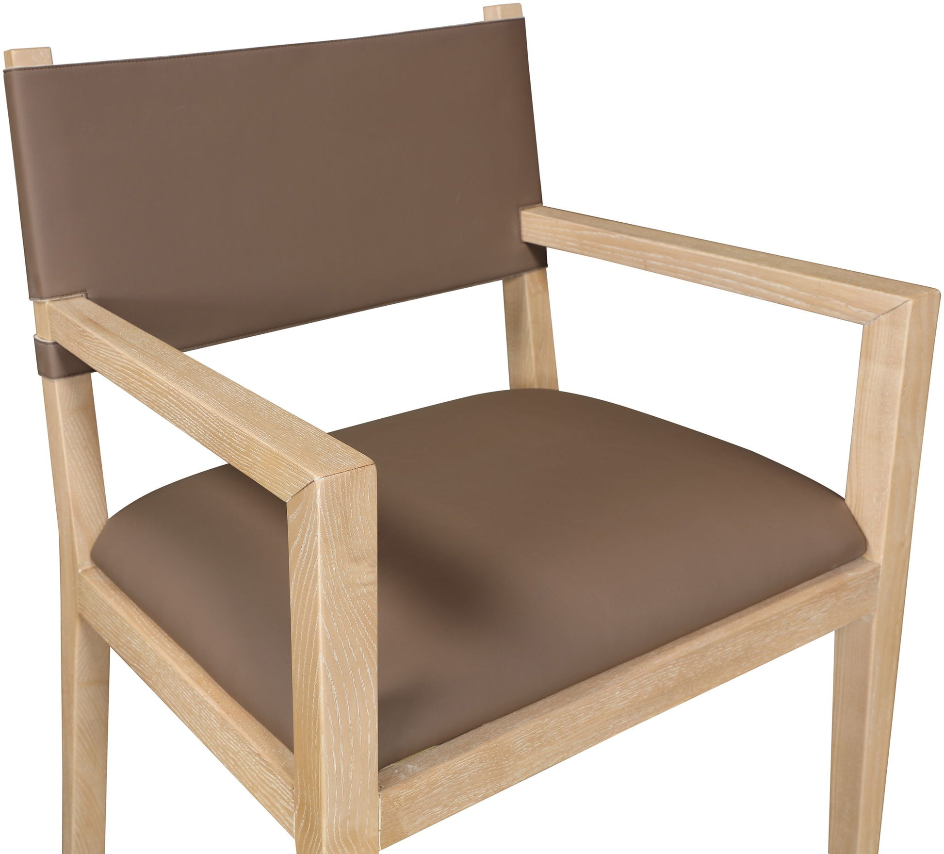 Vegan leather meets sleek brown walnut ash wood in the Avon dining arm chair, creating a look that's as practical as it is polished. Built to resist stains and stand up to everyday use, this piece doesn't sacrifice comfort for style. Whether it's a quiet breakfast or a lively dinner party, this chair rises to the occasion with understated elegance.