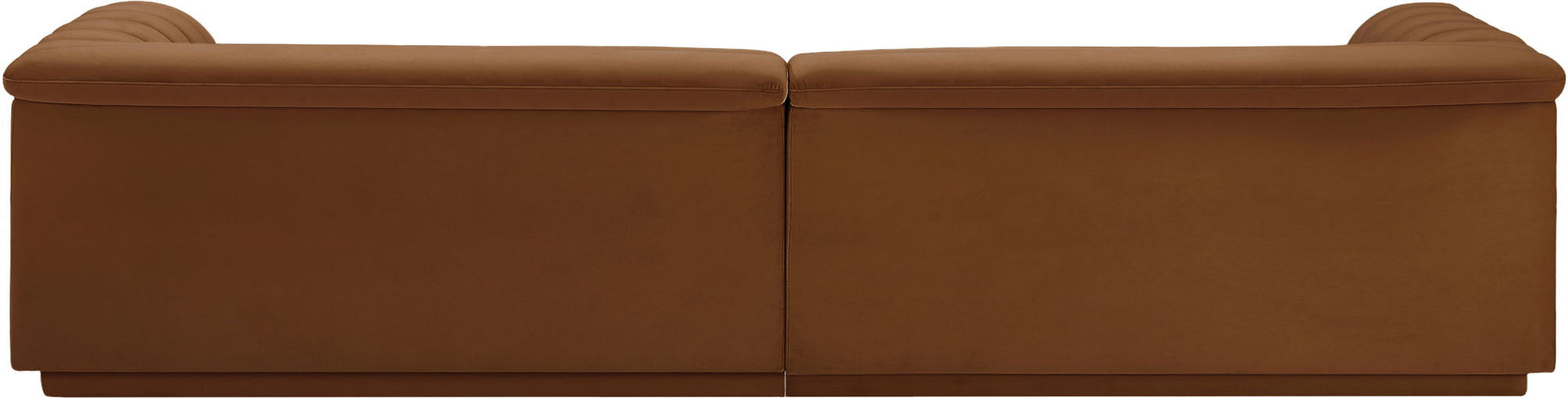 Give your room a much-needed rehab when you bring home this Cascade velvet modular sofa. The elegantly attention-grabbing design features a modern profile with curved arms deep horizontal channel tufting, so it wows from all angles. Upholstered in rich saddle velvet, this seat quickly becomes everyone's favorite spot for curling up with a good book or smart device. Thick foam padding ensures a cozy, body-hugging experience. while you watch TV or just relax.