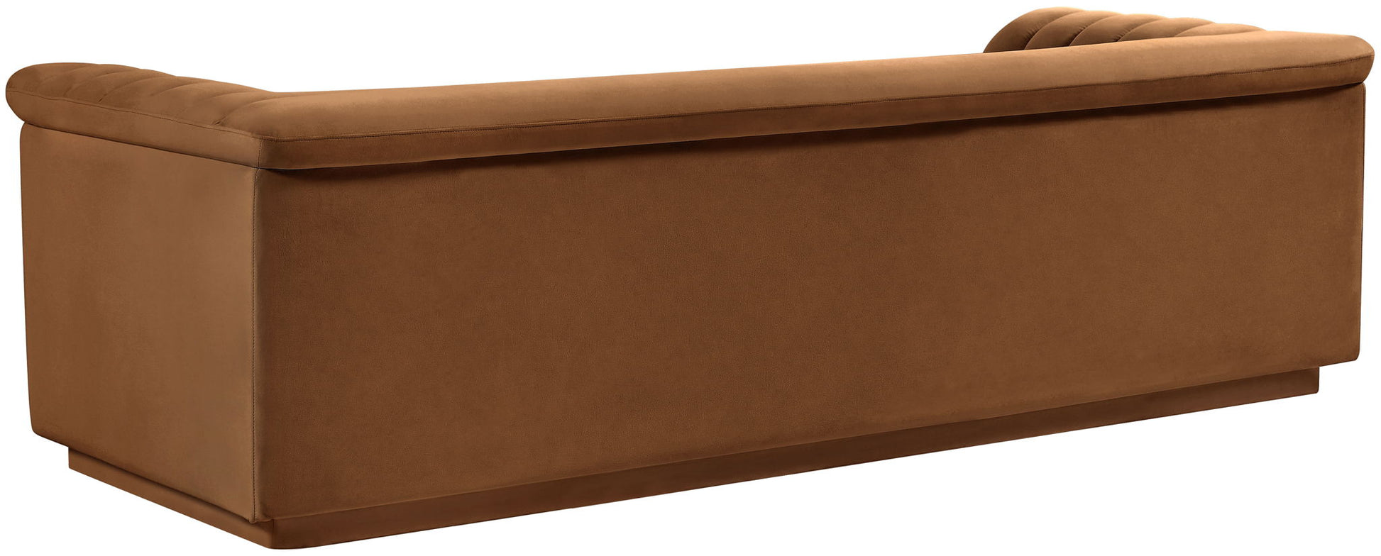 Add instant modern pizzazz to your living room or den with this Cascade velvet fabric sofa. Upholstered from top to bottom in soft saddle velvet upholstery, this chic sofa adds contemporary flair to any space you choose to use it in. Curved arms and a sleek profile make this sofa beautiful to behold while deep channel tufting adds to its long-term durability and adds a textural feel. Thickly padded arms, back and seat make this chair perfect for curling up in while watching TV or reading the latest bestseller.