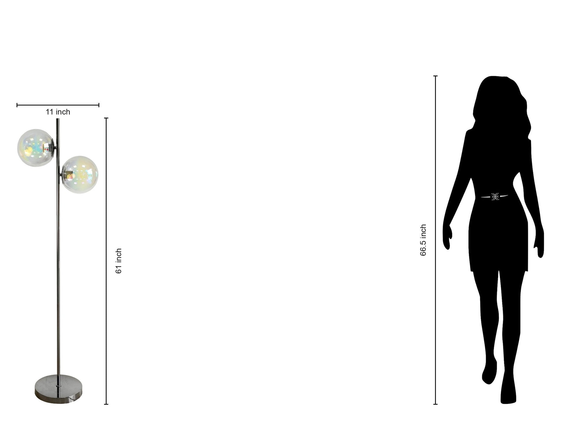 Elevate your living space with the Celestial Radiance floor lamp. Standing at 61 inches, this modern piece features dual iridescent glass globes that cast a mesmerizing glow, perfect for creating an ambient atmosphere in any room. The black nickel metal frame adds a touch of sophistication, making it an ideal addition to your reading nook or living room corner.