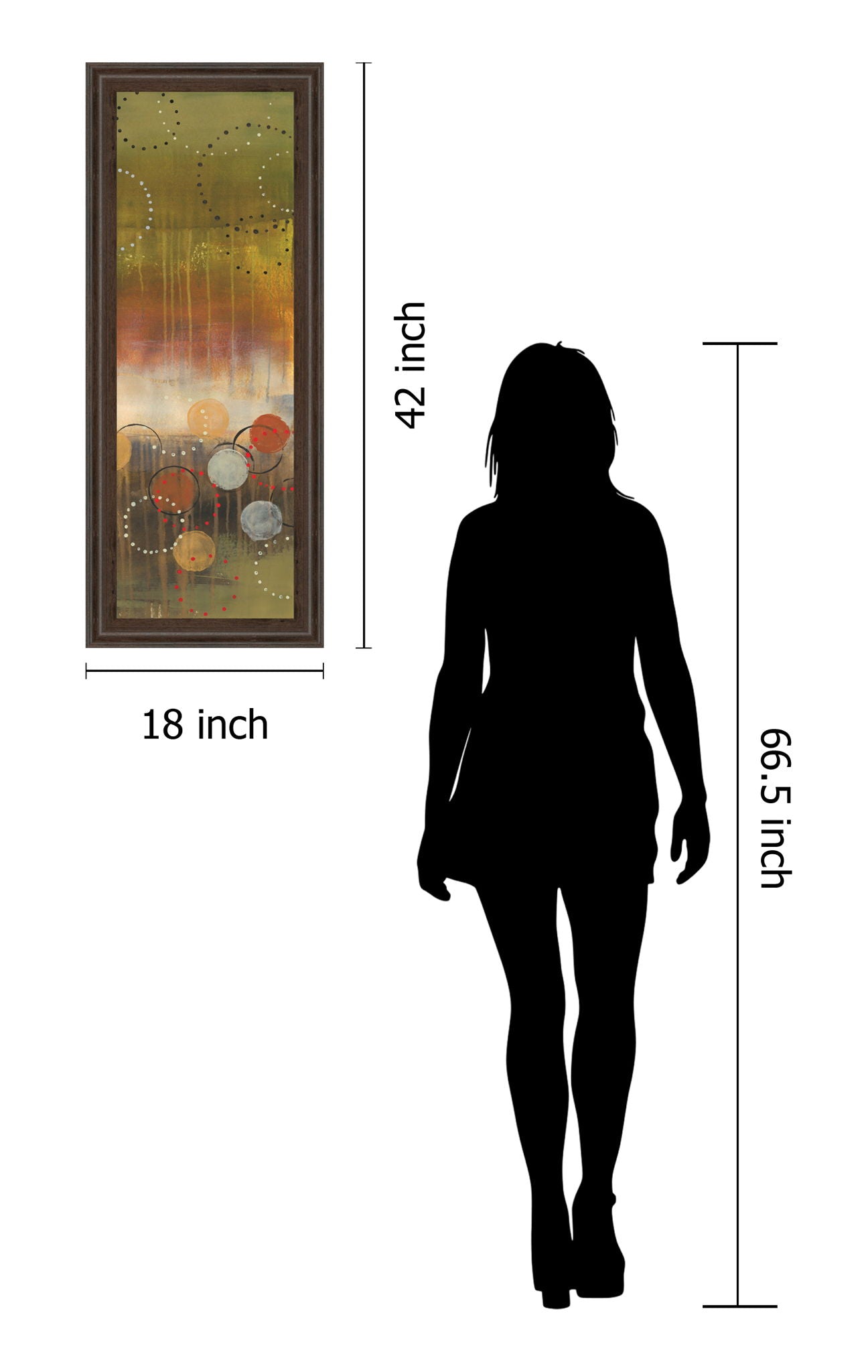 Step into a world where geometry meets warmth with this captivating framed wall art. The piece features an elegant cinnamon mocha frame that enhances the rich palette of greens, oranges, reds, and neutrals, creating a harmonious blend that invites both modernity and coziness into your space. Delicate circular patterns float across the canvas, evoking a sense of movement and balance, while the premium real glass protects the vibrant colors and intricate details. Perfectly suited for living rooms, bedrooms, or offices, this artwork transforms any wall into a sophisticated focal point, crafted with expert care and ready to inspire.