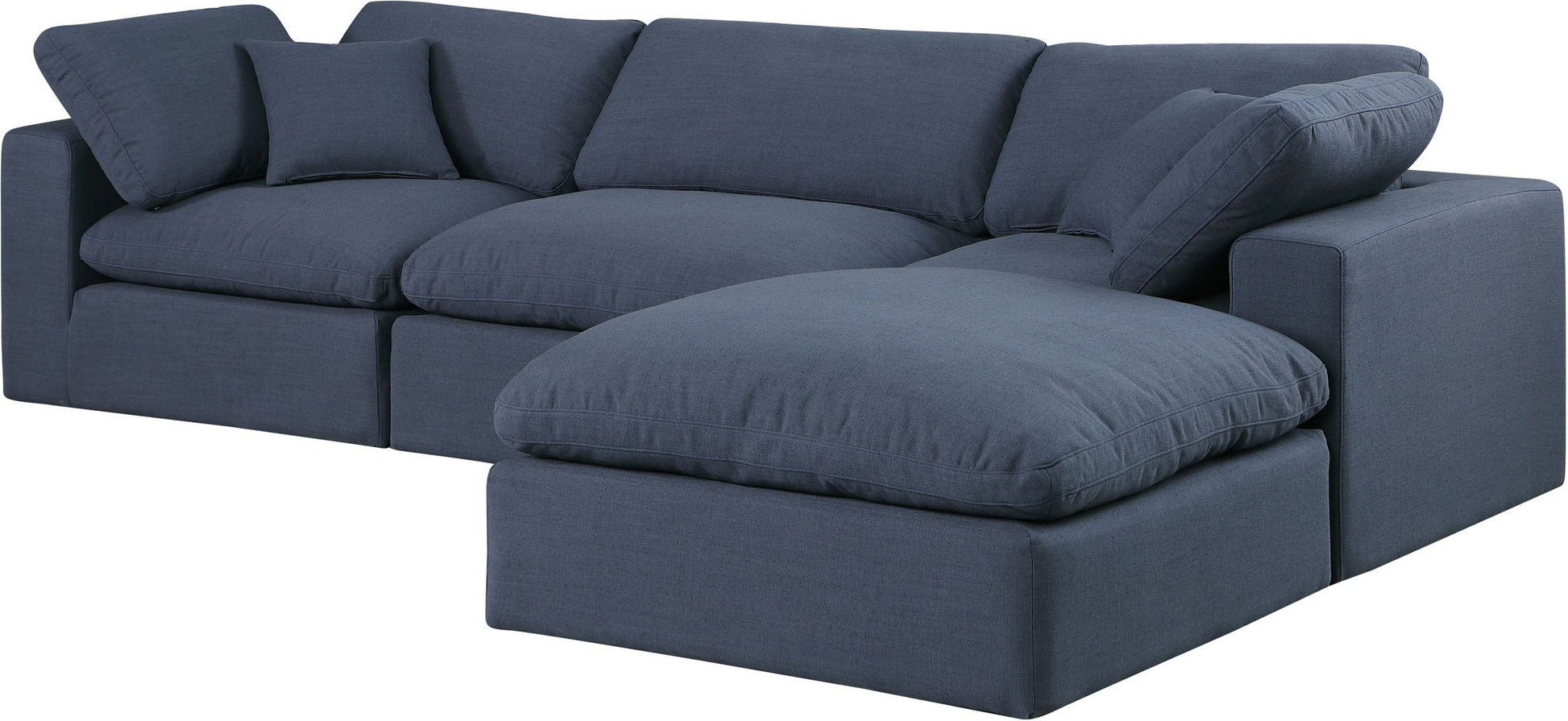 Comfy - 4 Piece Linen Fabric Modular Sectional With Chaise - Blue