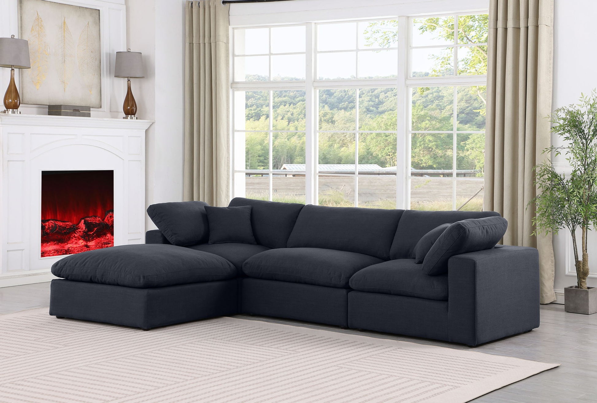 Give your space a whole new look with this Comfy linen textured fabric sectional. This handsome sectional fits nicely with other items in the Comfy collection and is a versatile seating option designed for adaptability, comfort and style. Wrapped in rich durable linen textured fabric upholstery, this sectional offers a plush embrace of overstuffed down feather cushions, carefully crafted to deliver the highest level of comfort. The perfect seat for creating an oasis for relaxation, this sectional has thick foam surrounding its frame for added support and coziness.