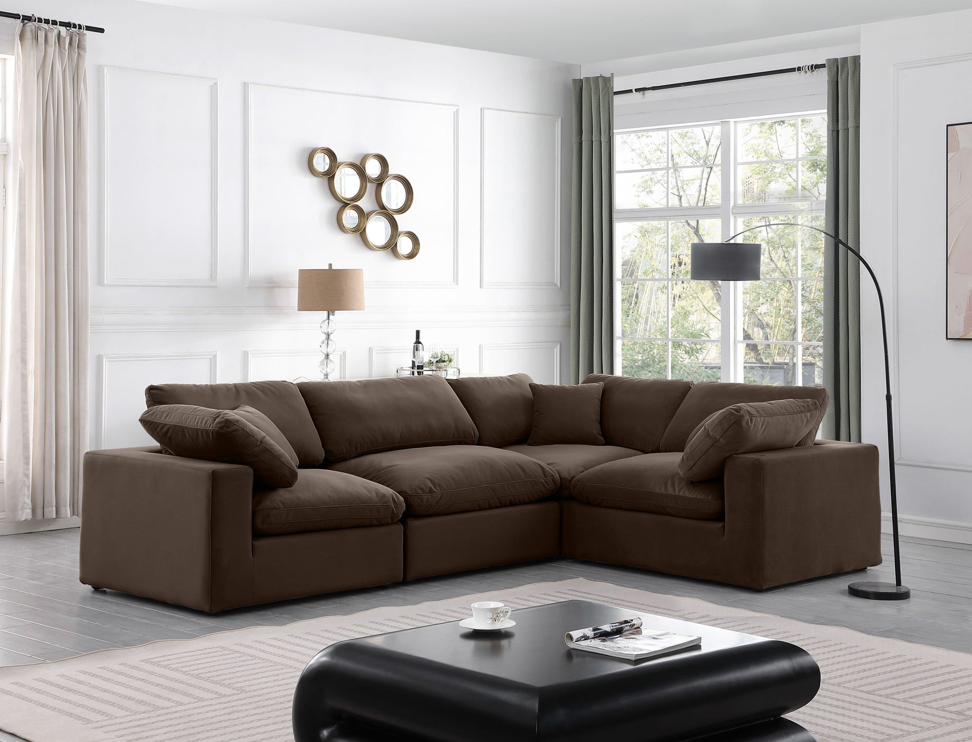Comfy - 4 Piece Velvet Modular Sectional - Dark Brown