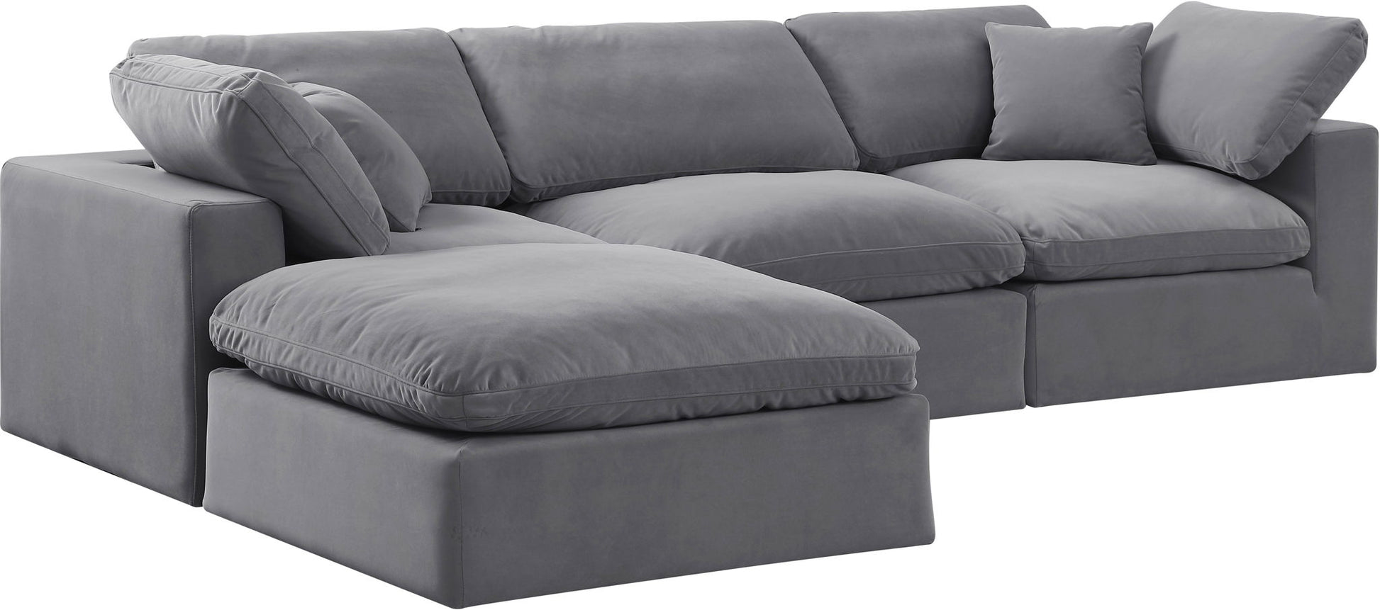 Comfy - 4 Piece Velvet Modular Sectional With Chaise - Dark Gray