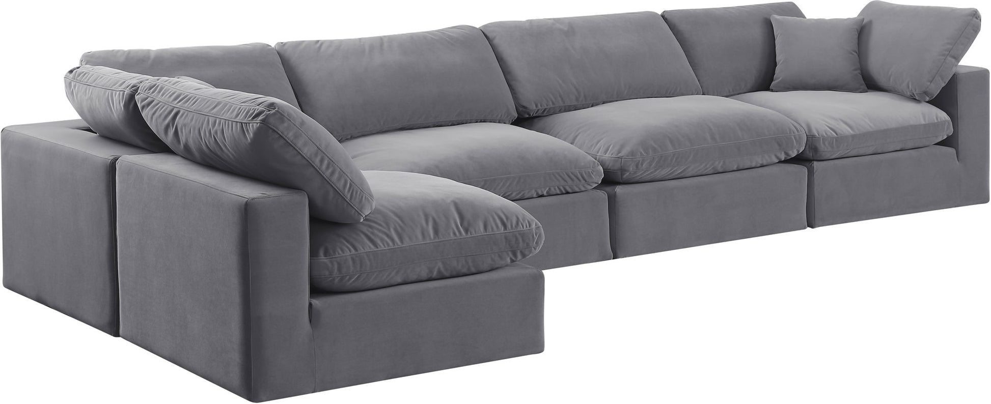 Comfy - 5 Piece Velvet Modular Sectional - Dark Gray