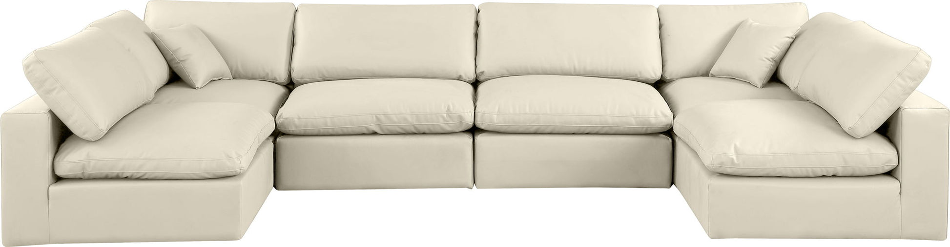 Comfy - 6 Piece Faux Leather Modular Armless Sectional - Cream