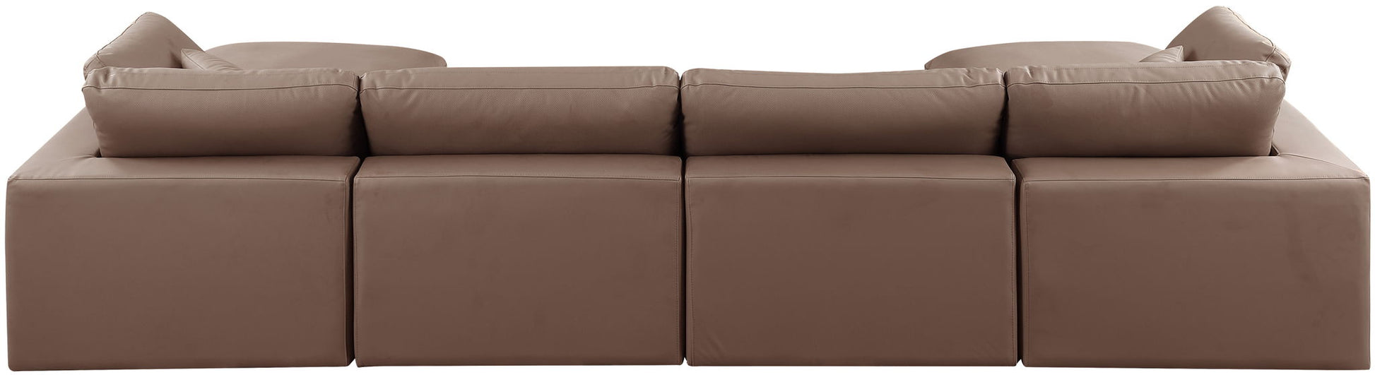 Comfy - 6 Piece Faux Leather Modular Double Chaise Sectional - Brown