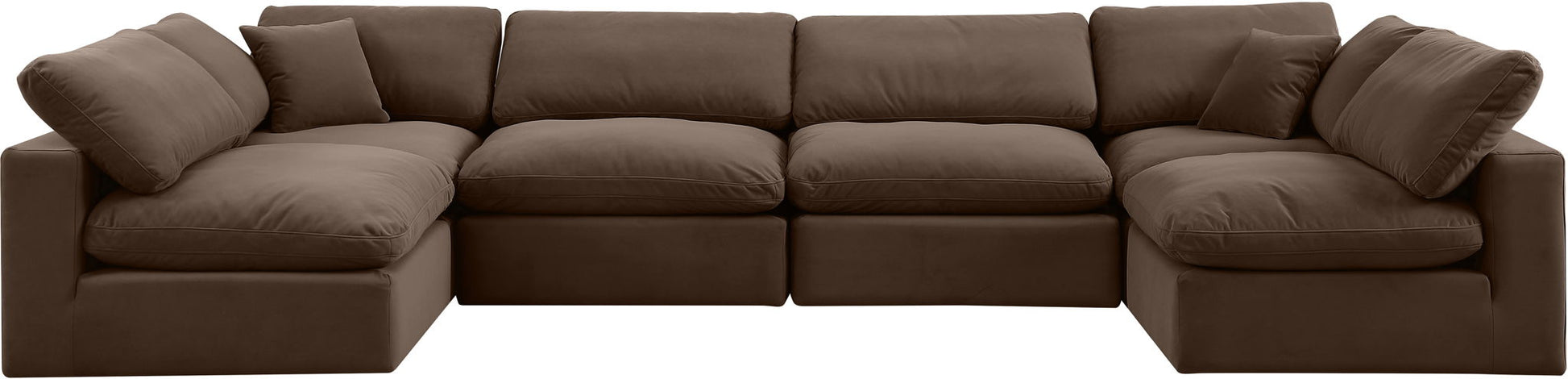 Comfy - 6 Piece Velvet Modular Armless Sectional - Dark Brown