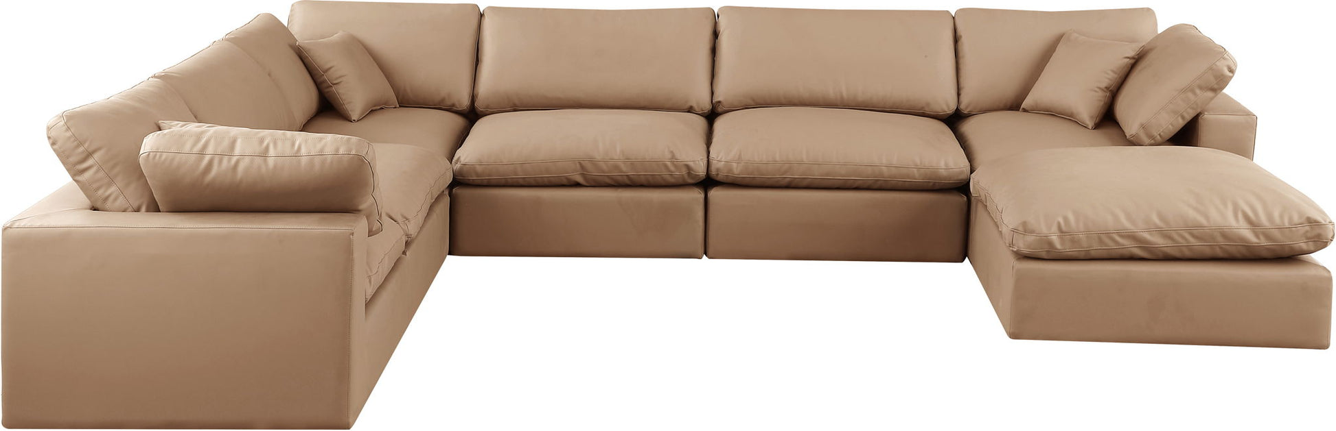 Comfy - 7 Piece Faux Leather Modular Sectional With Chaise - Tan