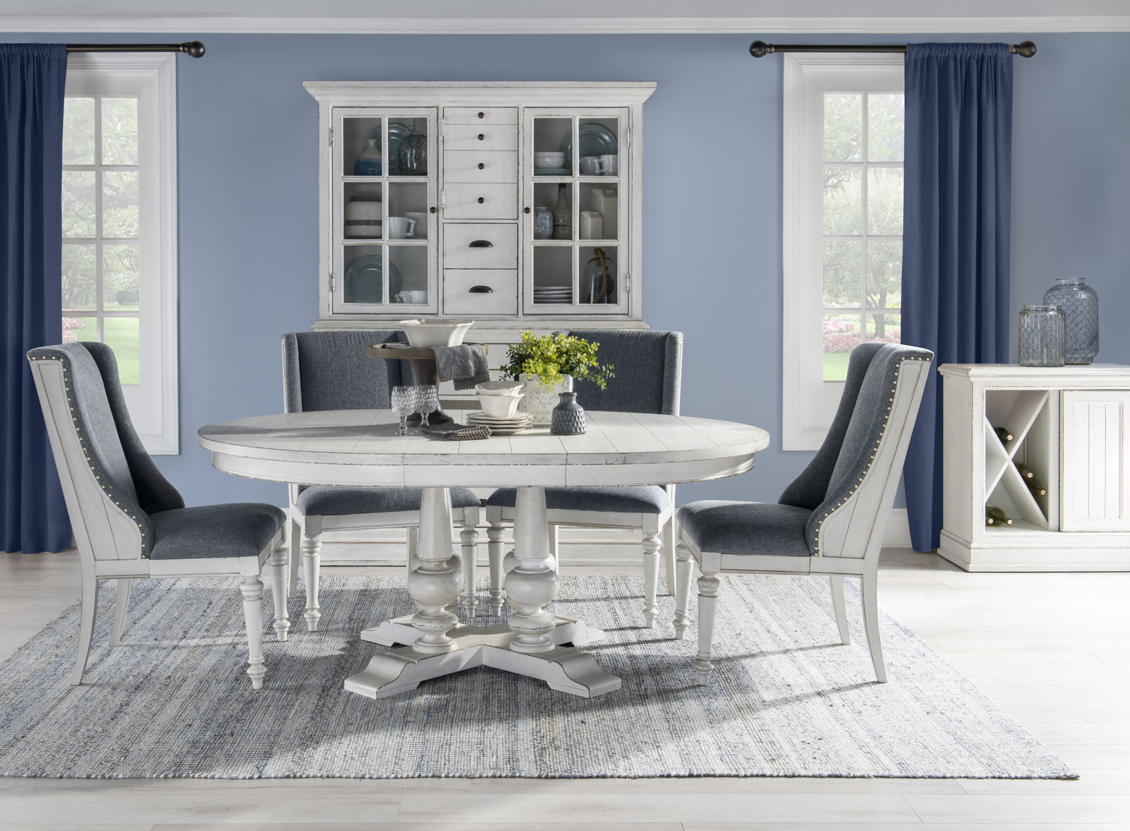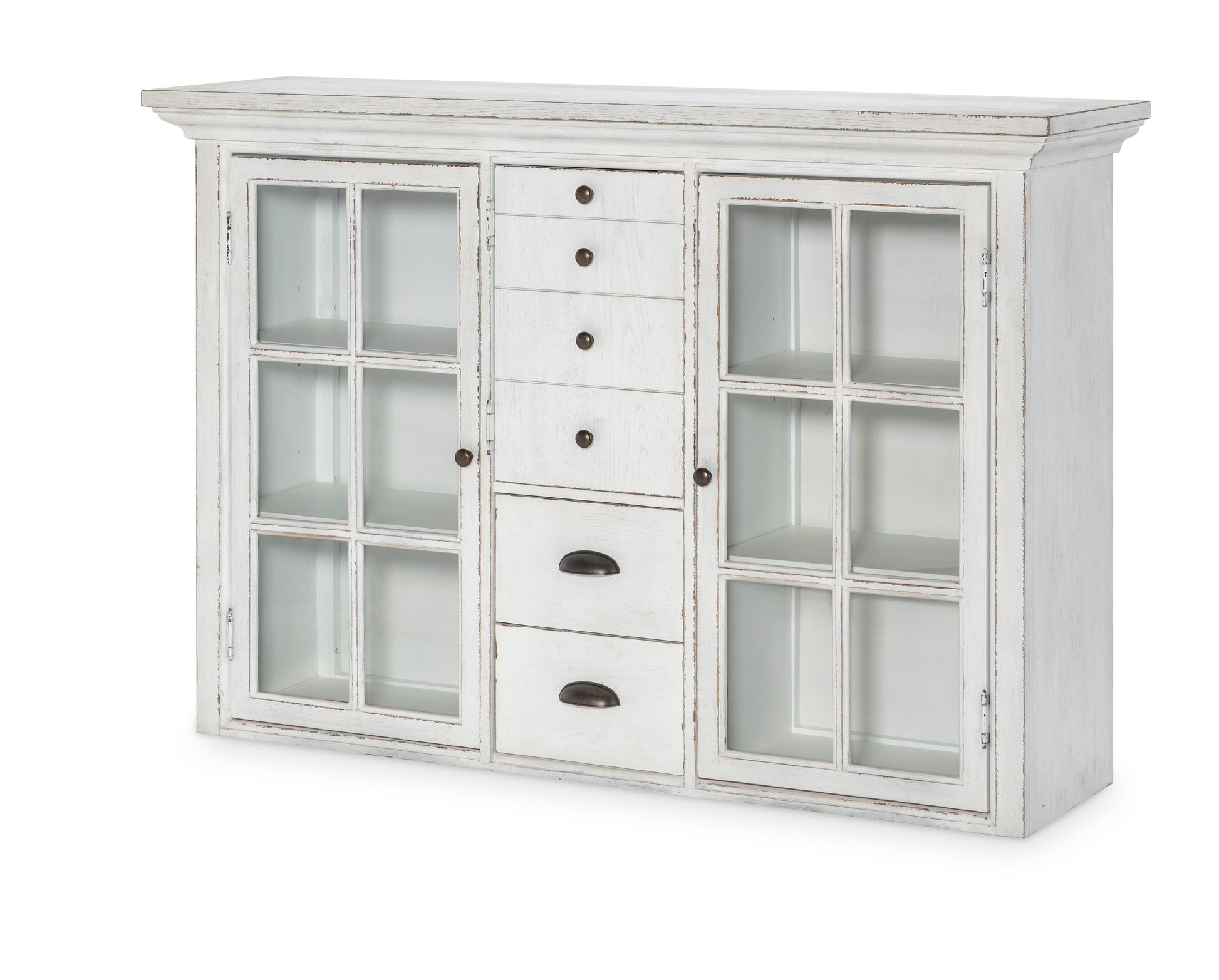 The Cottage Park collection embodies coziness and hospitality, while maintaining a unique and distinctive style. The heavily distressed Aged White finish with chipping details and the French Country style, combine to create a classically comfortable home collection. The Dark Bronze hardware adds the finishing touches to each case. The character and inspiration of this collection is found in the sculptural design elements of rustic antiques and beloved time-worn heirlooms.