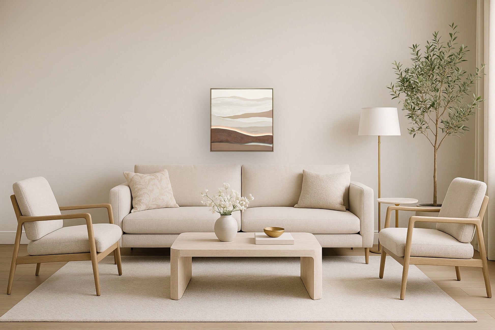 Experience the serene beauty of a desert landscape with 'Desert Glow'. This hand-embellished acrylic piece features soft, flowing textures enhanced by integrated LED lighting, creating a warm and inviting ambiance. Perfect for adding a touch of elegance to any modern living space.