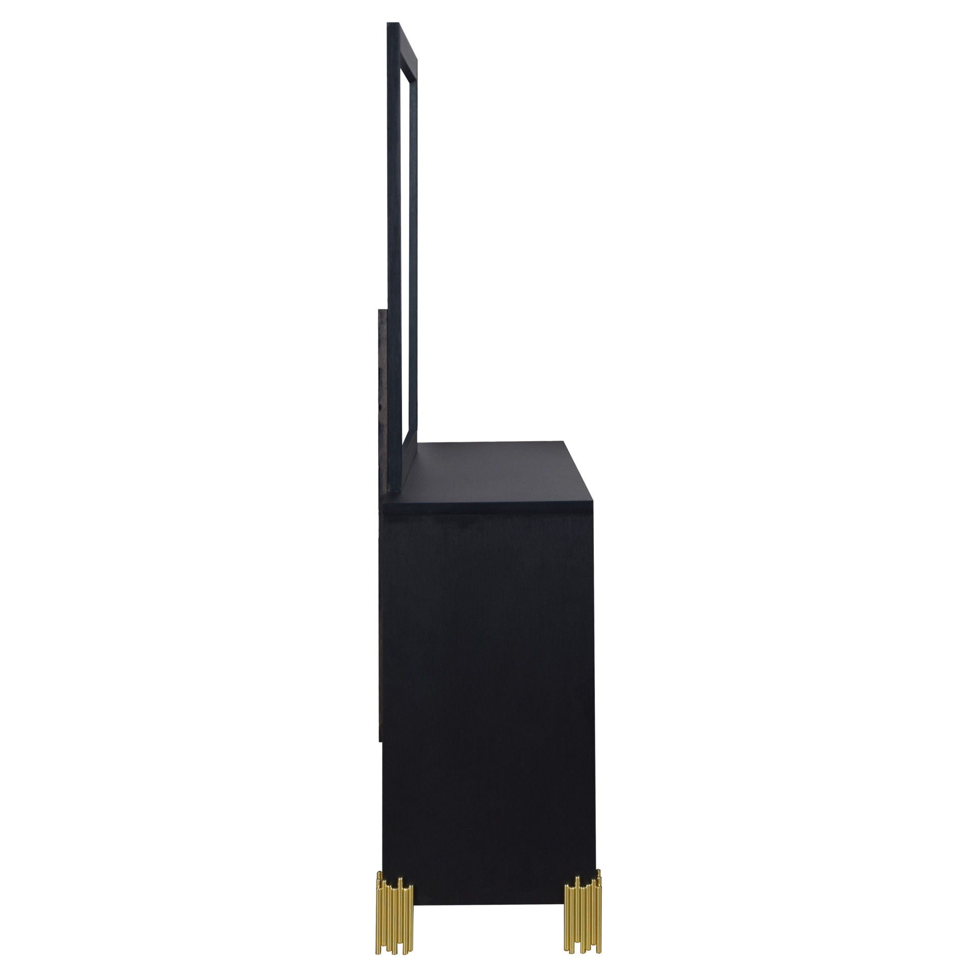 Introducing the Empire Mirror in sleek black, a stunning addition to any space. Crafted with durable eco-friendly materials and a sophisticated finish, this mirror exudes contemporary elegance. Its black framed, beveled low distortion design ensures a true reflection, adding depth and style to your decor.