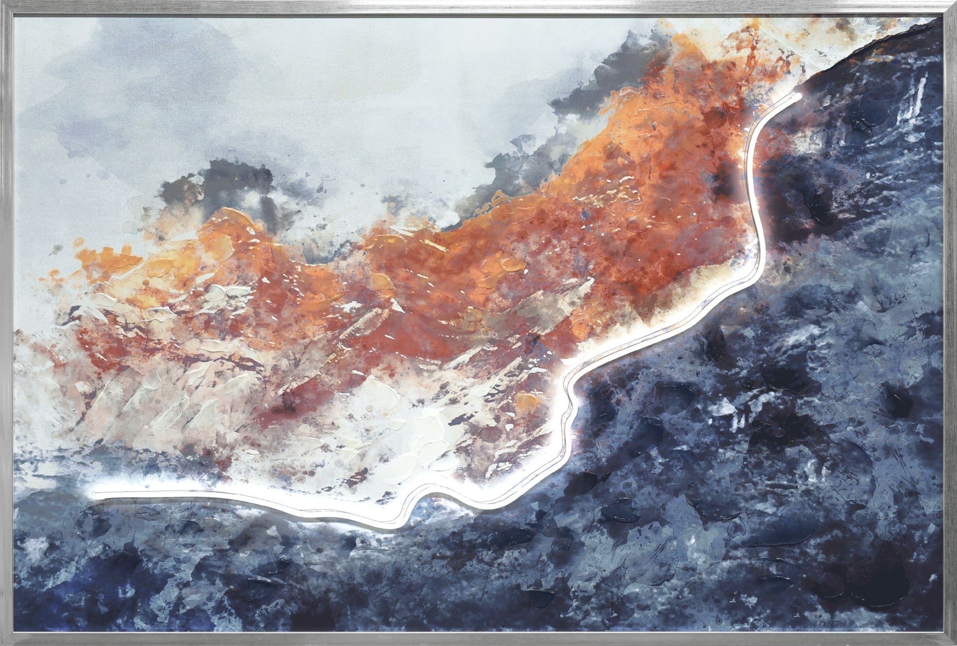 "Ethereal Glow" Hand-Embellished LED In Frame - Silver / Orange / Blue