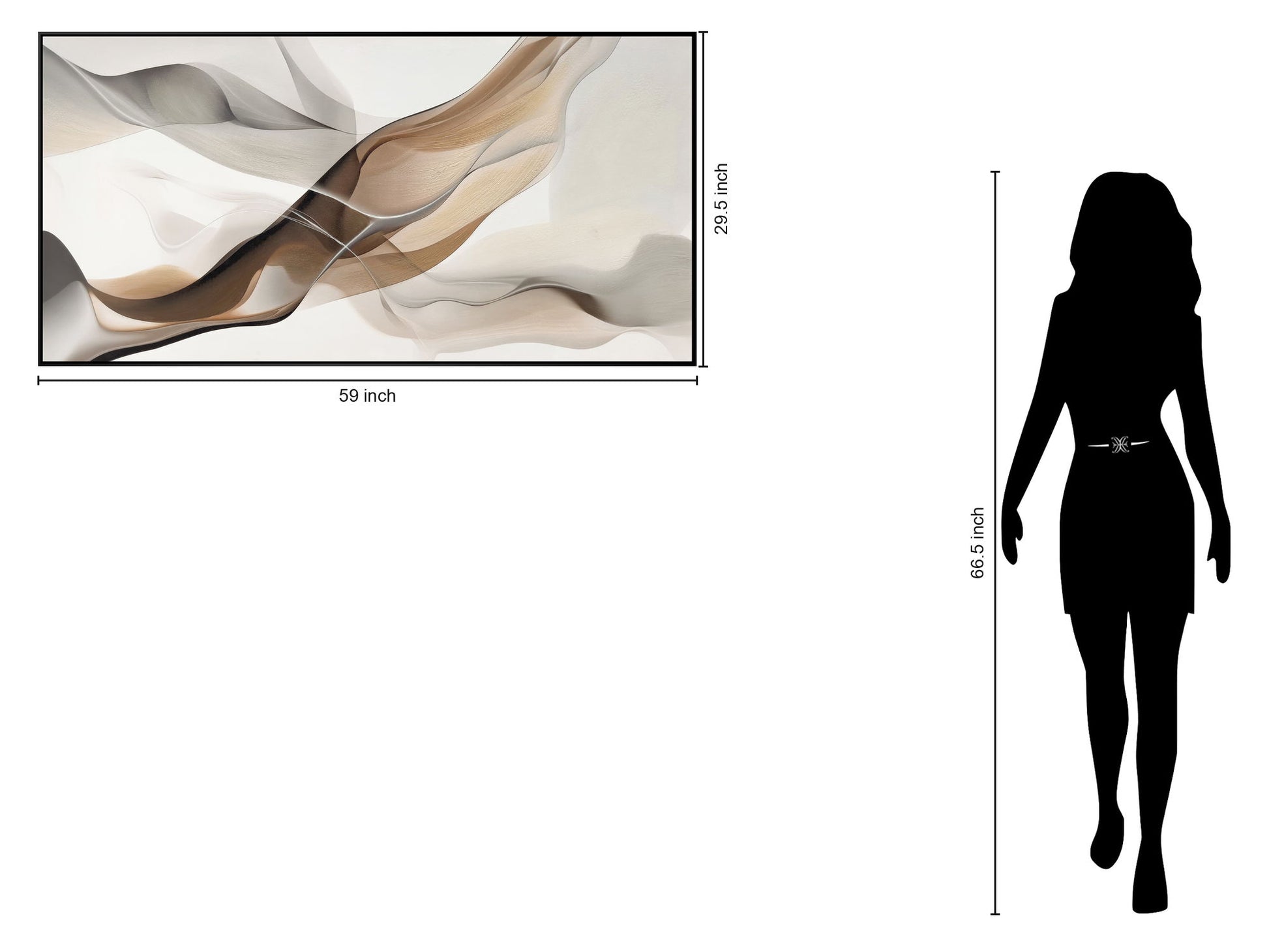 "Ethereal Waves" Hand-Embellished Canvas In Frame - Neutral / Beige / Brown