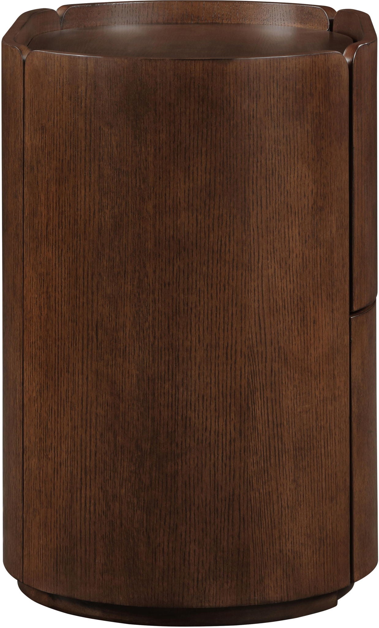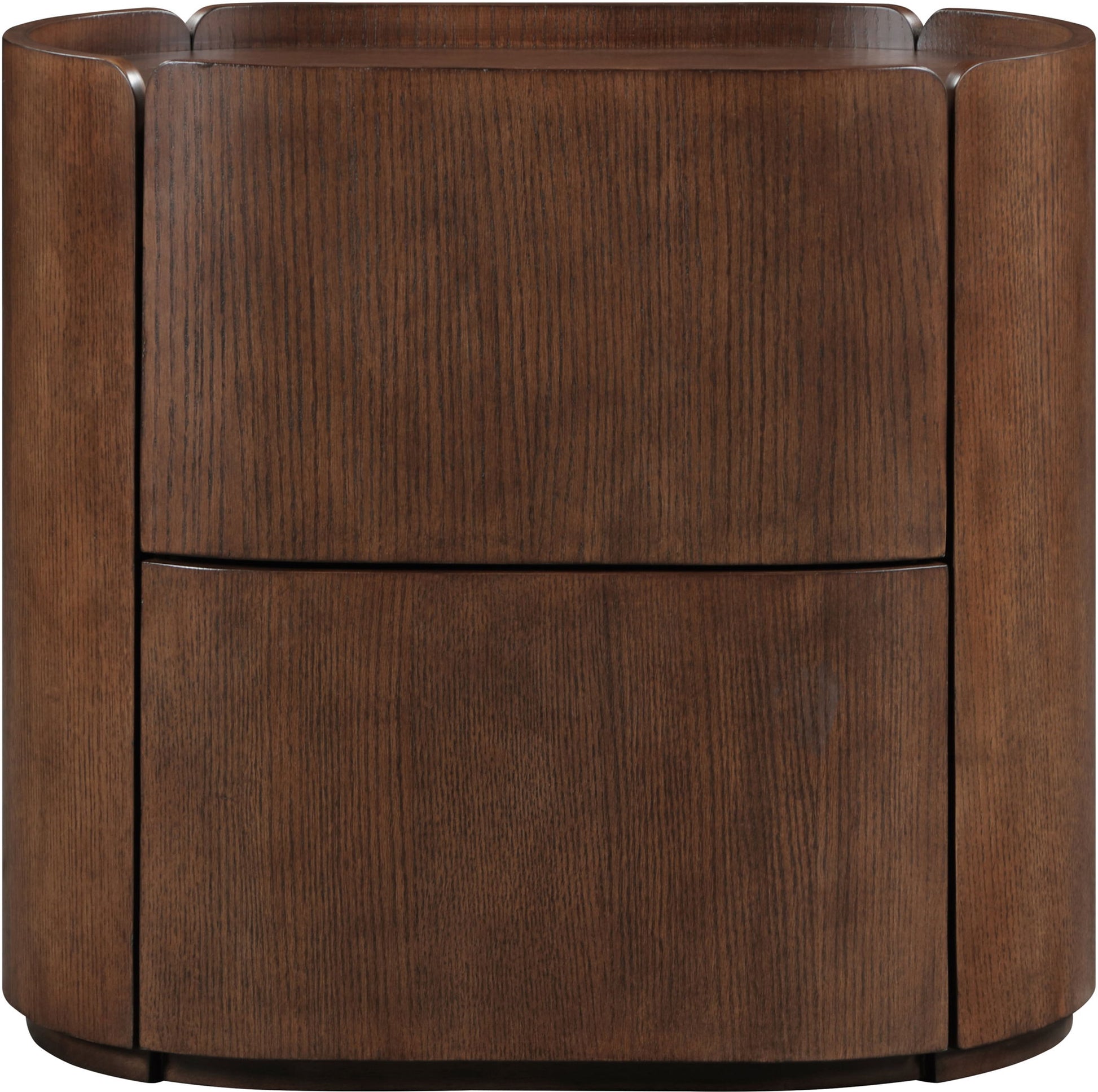 Everything you need at night is easily within arm's reach when you bring home this Everett nightstand. Its rich finish and oak veneer exude modern sophistication, complemented by a contemporary design with a raised edge around the perimeter of the top to keep everything in place. Perfect for bedside essentials, it blends practicality with style, offering ample storage and a sleek surface for lamps or decor. Enhance your bedroom with this functional yet elegant piece that combines timeless aesthetics with everyday convenience.