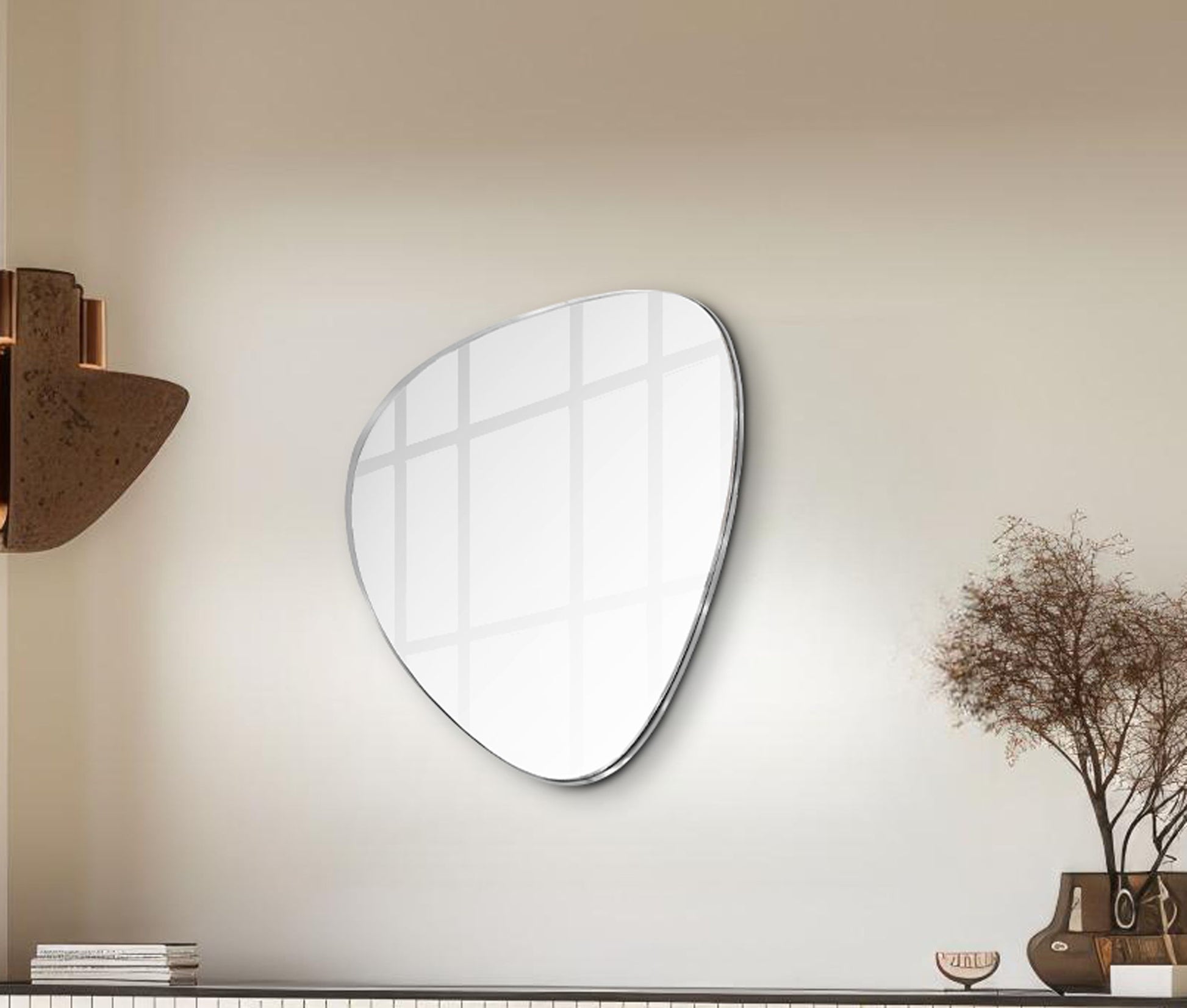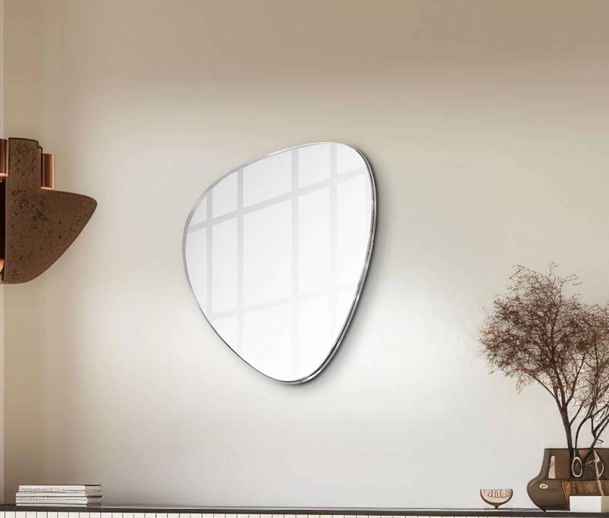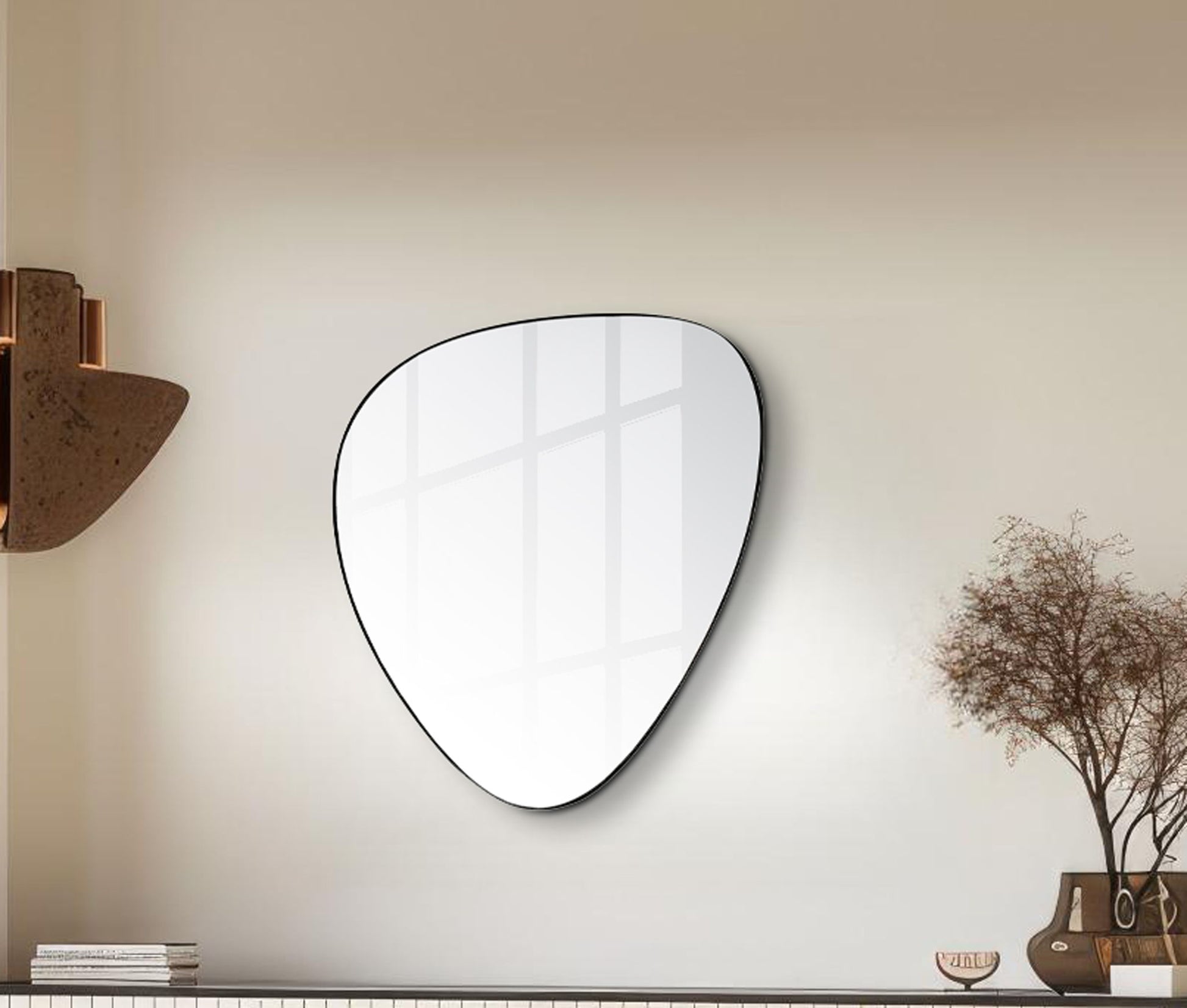 Restyle your walls with the Finch Mirror, a striking piece featuring a finish and a unique pebble-shaped iron metal frame. This mirror's contemporary design marries sleek modernity with organic forms, creating a captivating focal point in any room. Whether hung in your entryway, living room, or bedroom, this mirror adds a touch of sophistication and artistic flair, effortlessly enhancing your space with its distinctive shape and refined finish.