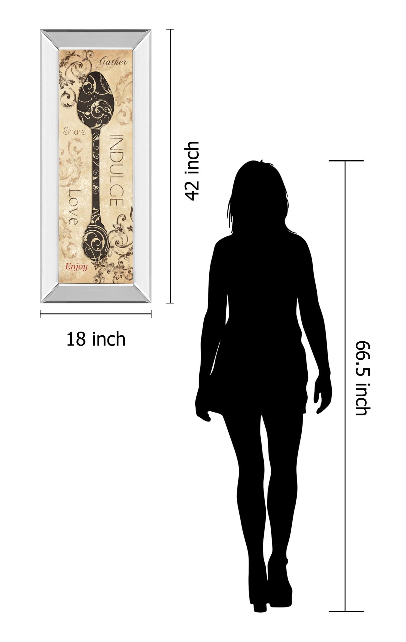 Transform your kitchen or dining area with the warm elegance of this beautifully framed wall art titled “Indulge.” Centered around a decorative spoon silhouette adorned with intricate scrollwork, the piece blends traditional charm with modern sophistication. Its warm beige background and inviting words like gather, share, love, and enjoy evoke a sense of togetherness and comfort. The sleek mirrored frame adds a touch of luxury and depth, reflecting light to brighten your space. Crafted with premium real glass and expert care, this artwork is ready to hang and become a cherished focal point in your home.