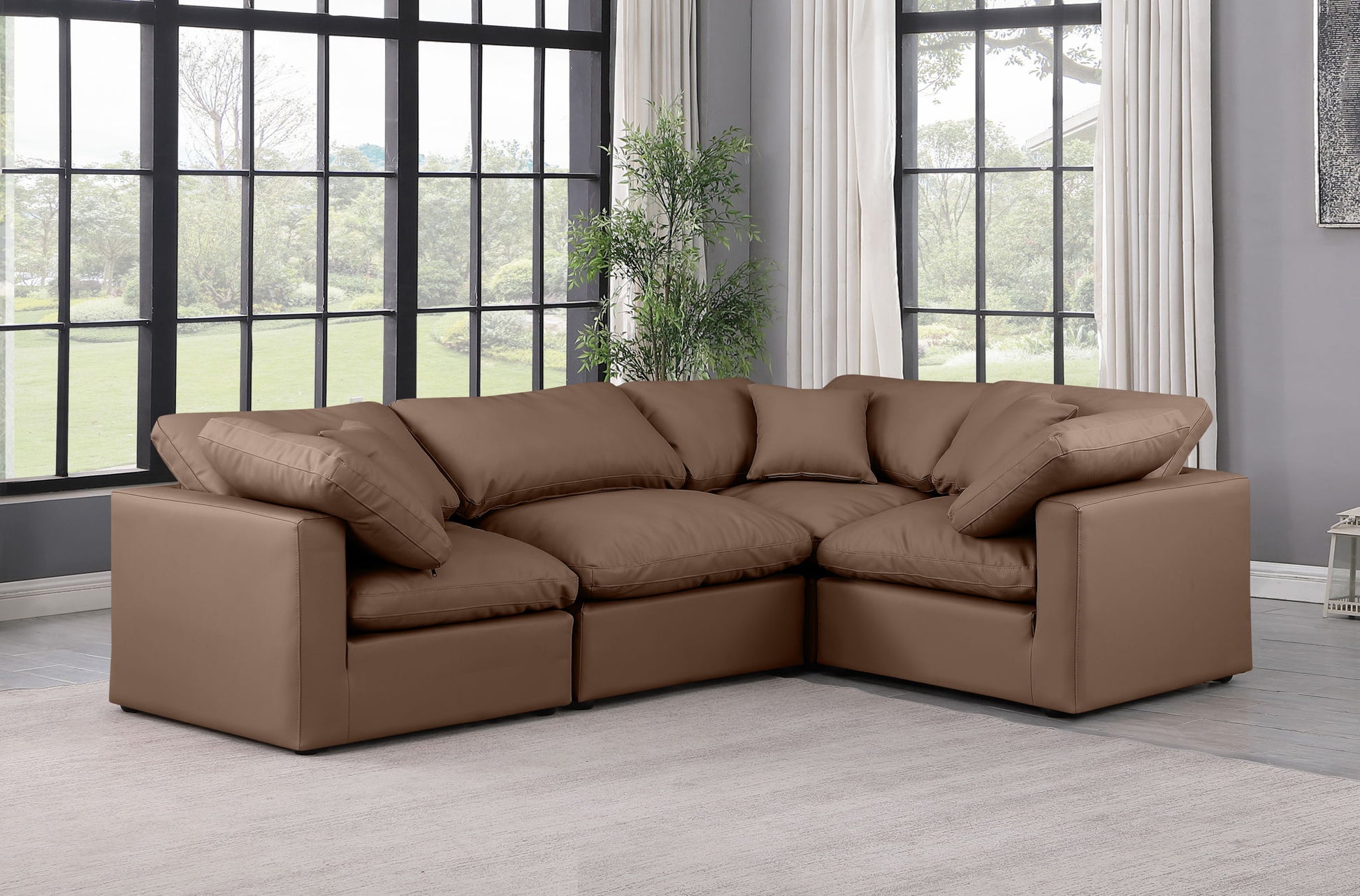 Indulge - Faux Leather 4 Piece Modular Corner Sectional - Brown